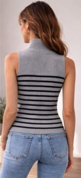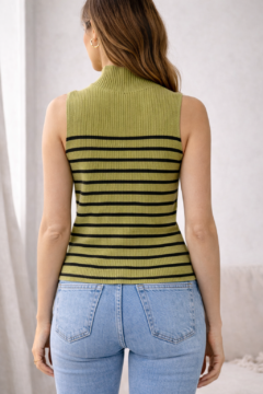 GREEN SLEEVELESS TURTLE NECK TOP