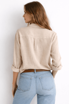 Original price was: 44 $.36 $Current price is: 36 $.A timeless piece with a soft vintage feel, this blouse features a delicate vertical stripe pattern intertwined with small floral motifs in warm earthy tones.