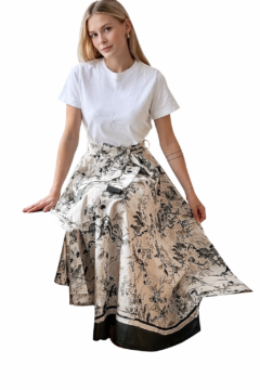 Elegant and effortlessly feminine, this printed maxi skirt brings timeless sophistication to any wardrobe.