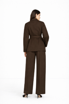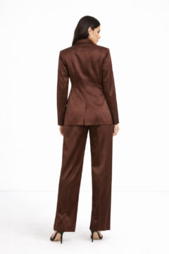 A sophisticated satin suit set designed to bring elegance and confidence to any occasion.