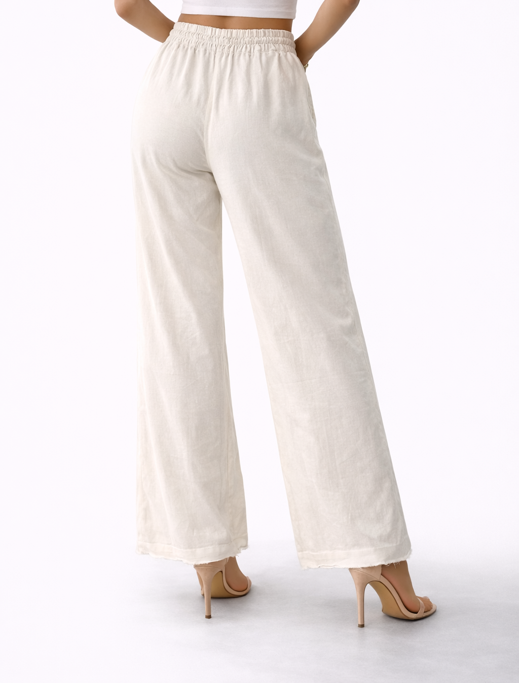 Effortlessly chic and ultra-comfortable, these cream wide-leg pants are designed for a relaxed yet elevated look.