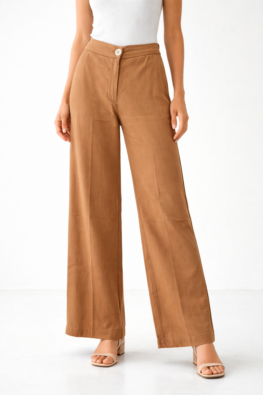 Refined and effortlessly sophisticated, these caramel wide-leg pants are designed to elevate your everyday style. Featuring a flattering high-waisted cut and a fluid straight silhouette, they create a long, elegant line while offering exceptional comfort.
