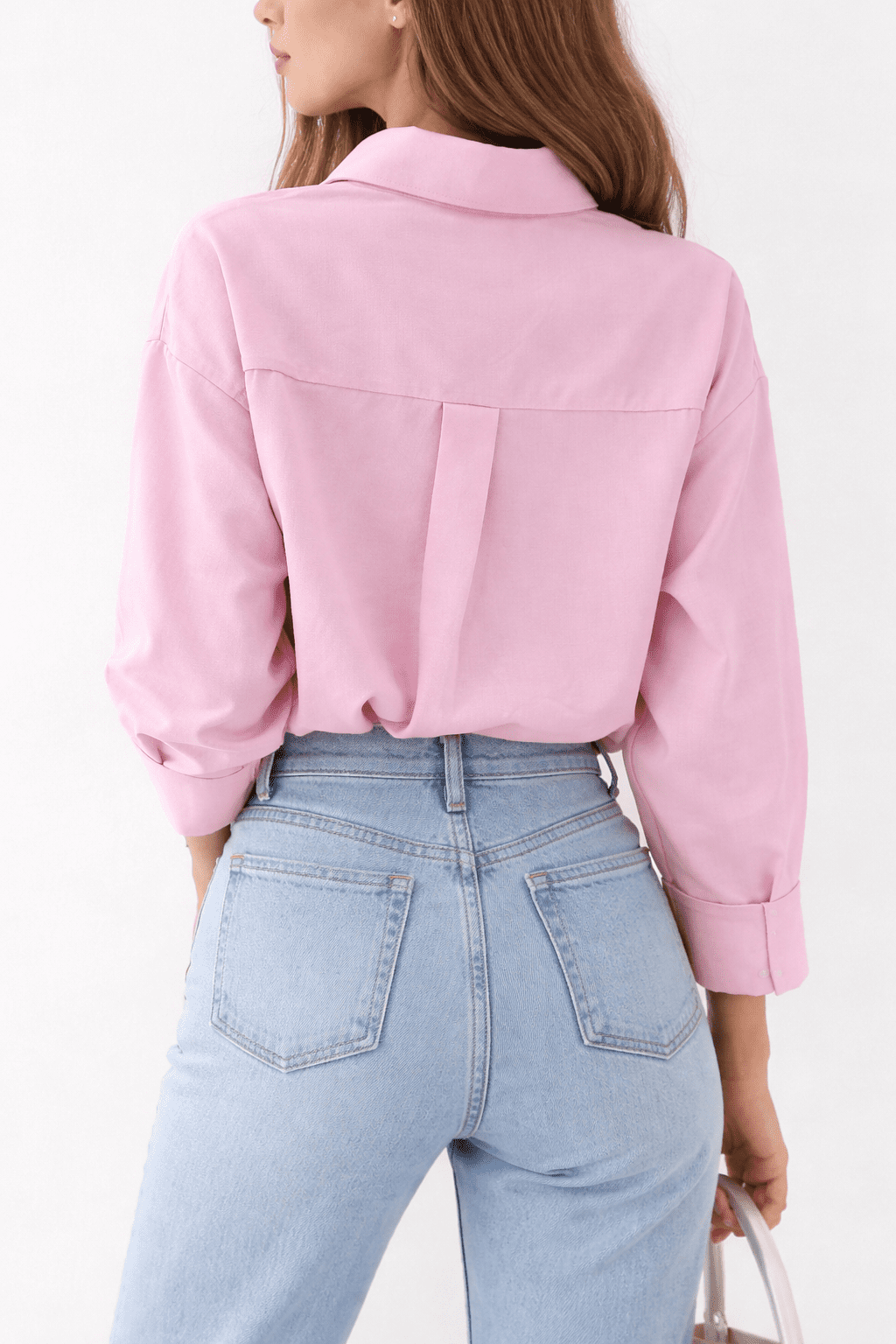 A charming and feminine shirt crafted in a soft pastel pink shade, featuring a delicate red heart detail on the front for a playful, romantic touch.
