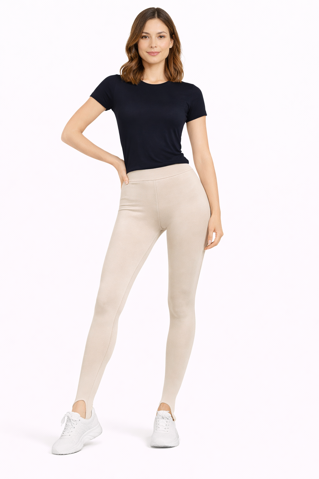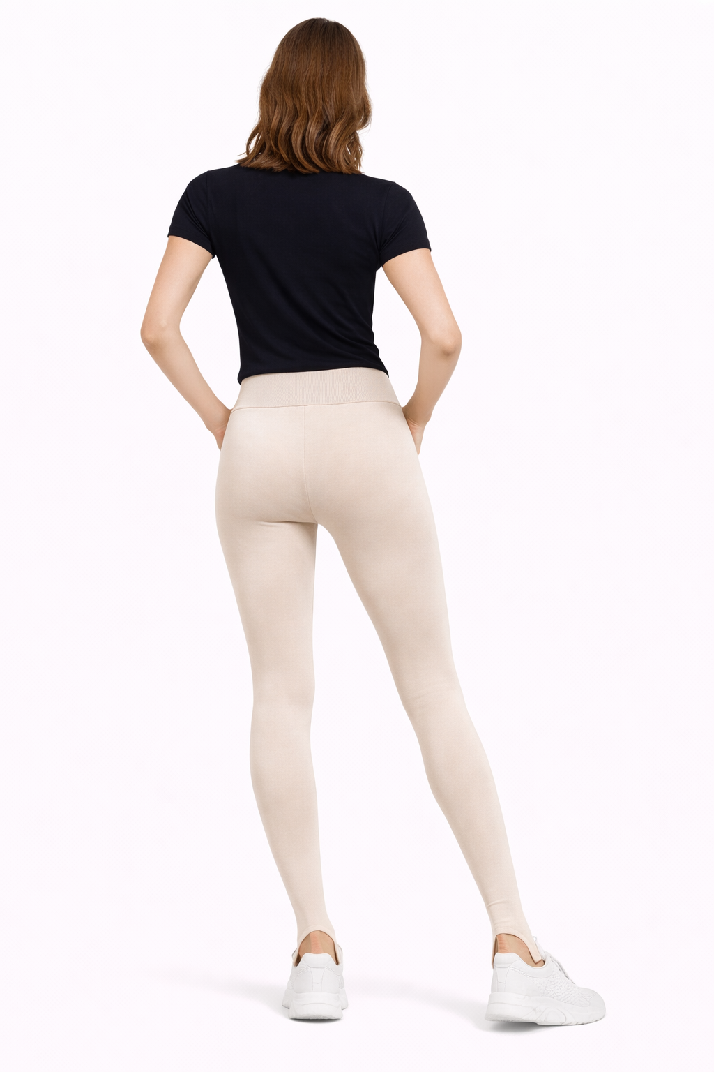 Elevate your everyday essentials with these sleek beige stirrup leggings, designed to deliver both comfort and style.