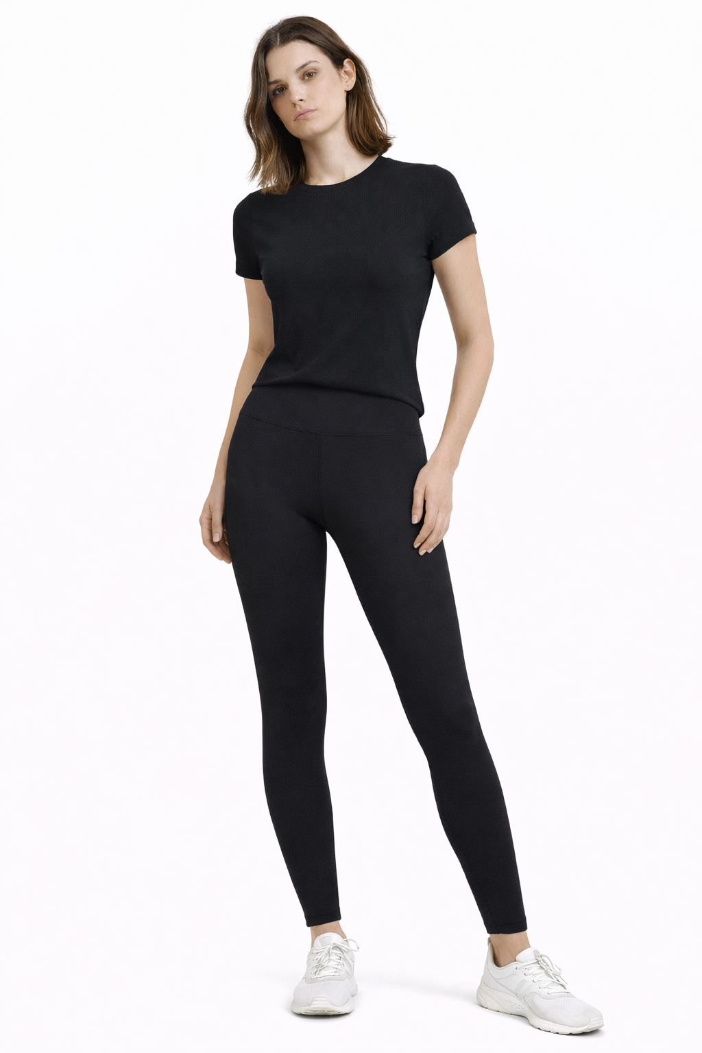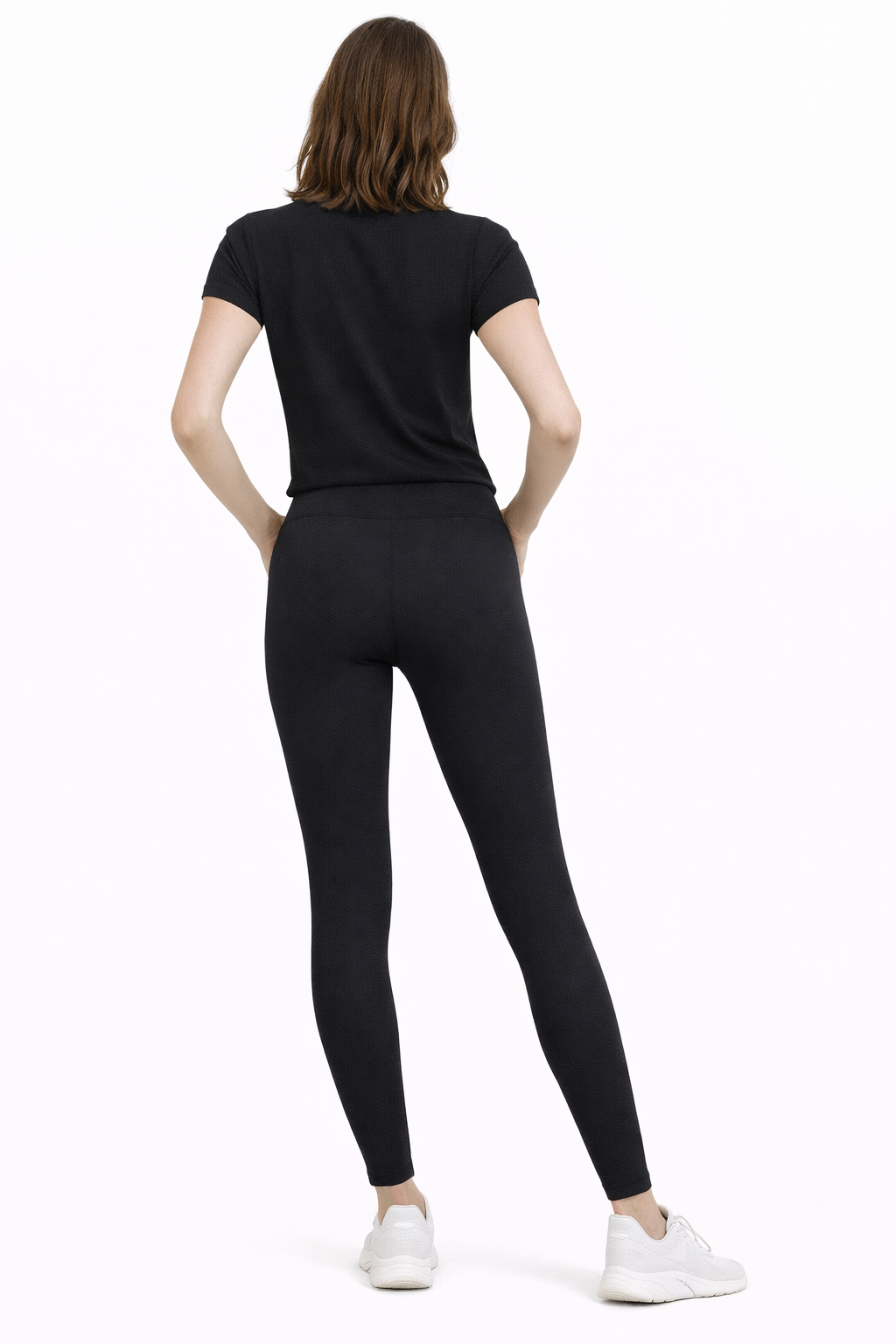 These sleek black leggings are designed to combine comfort, flexibility, and modern style