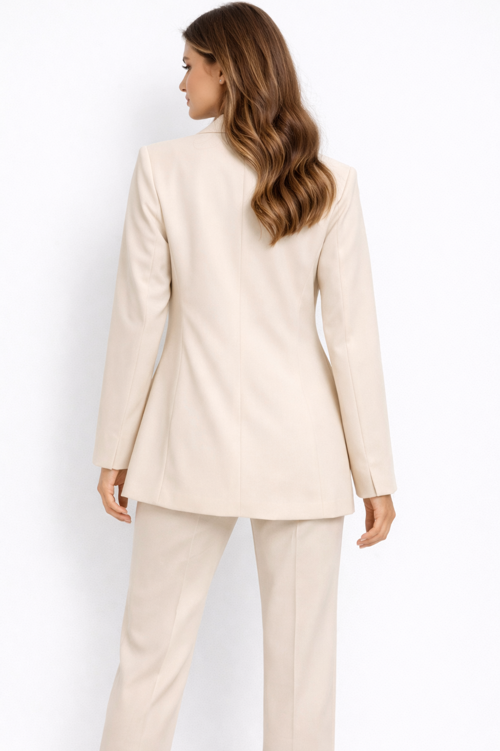 Elevate your wardrobe with this elegant cream tailored suit set, designed for a polished and sophisticated look.