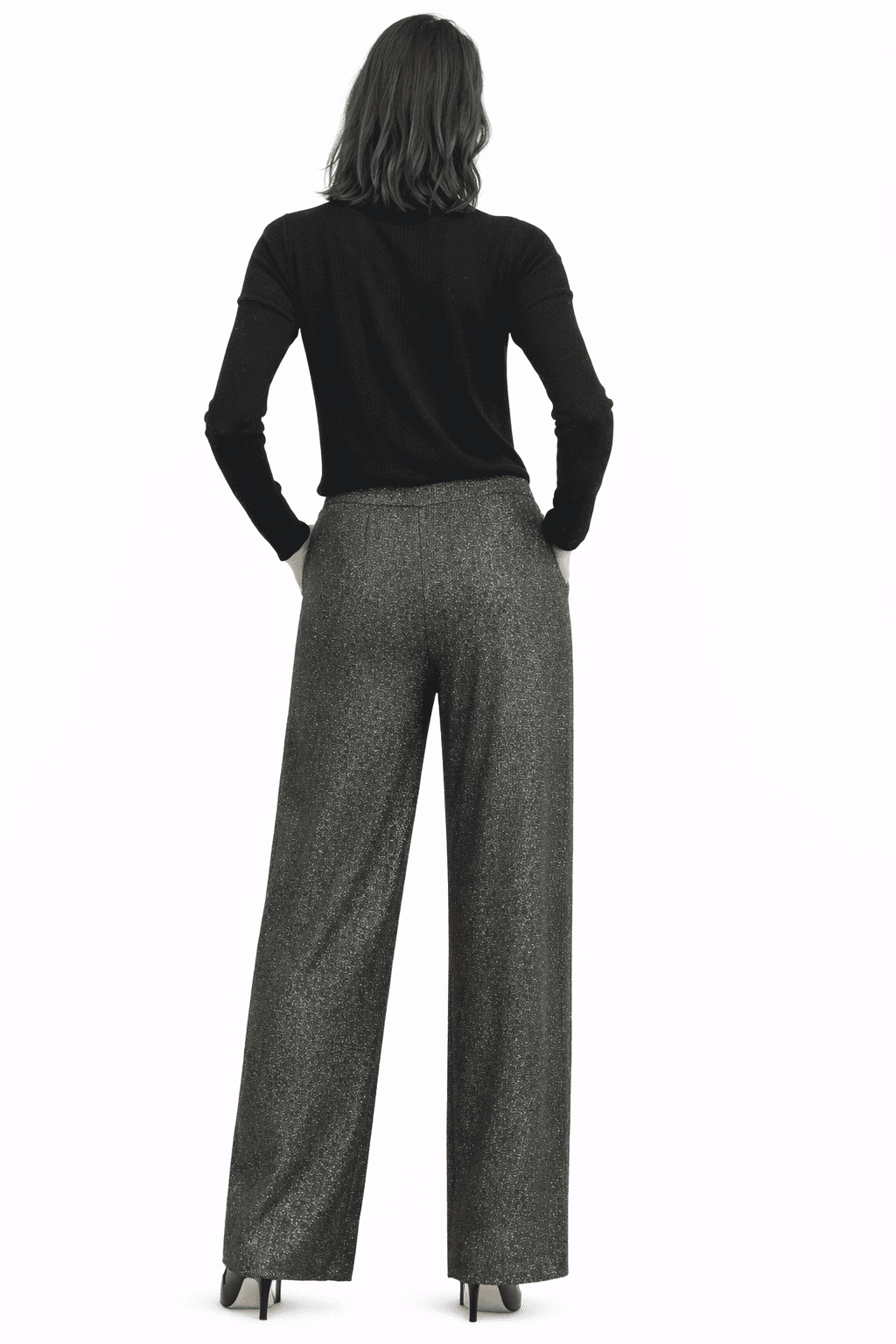 Make a statement with these elegant glitter wide-leg pants designed to add a touch of sparkle to your wardrobe.