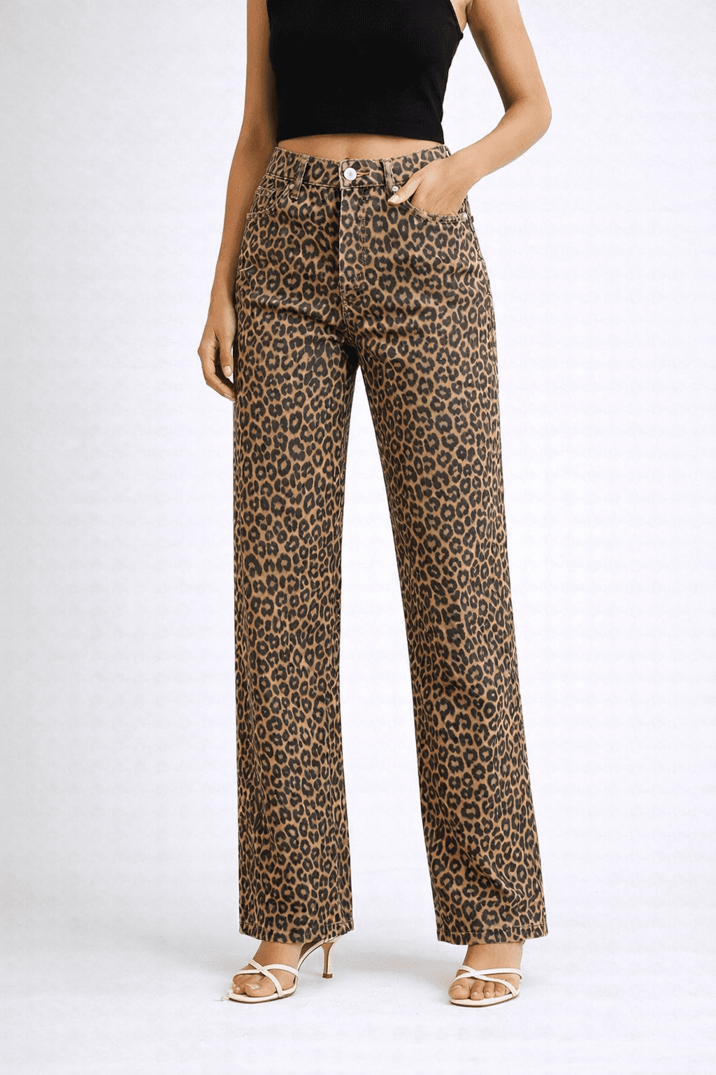 Leopard-print wide-leg pants designed in a relaxed straight silhouette for an effortlessly chic look. Crafted from a soft, fluid fabric that drapes beautifully on the leg, featuring a comfortable high-rise waist and full-length cut.