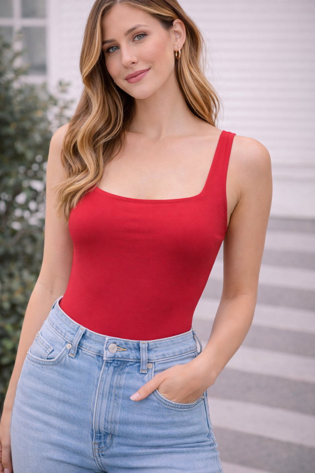 Turn heads with this striking red slim fit bodysuit, designed to enhance your natural silhouette with a sleek and flattering fit.