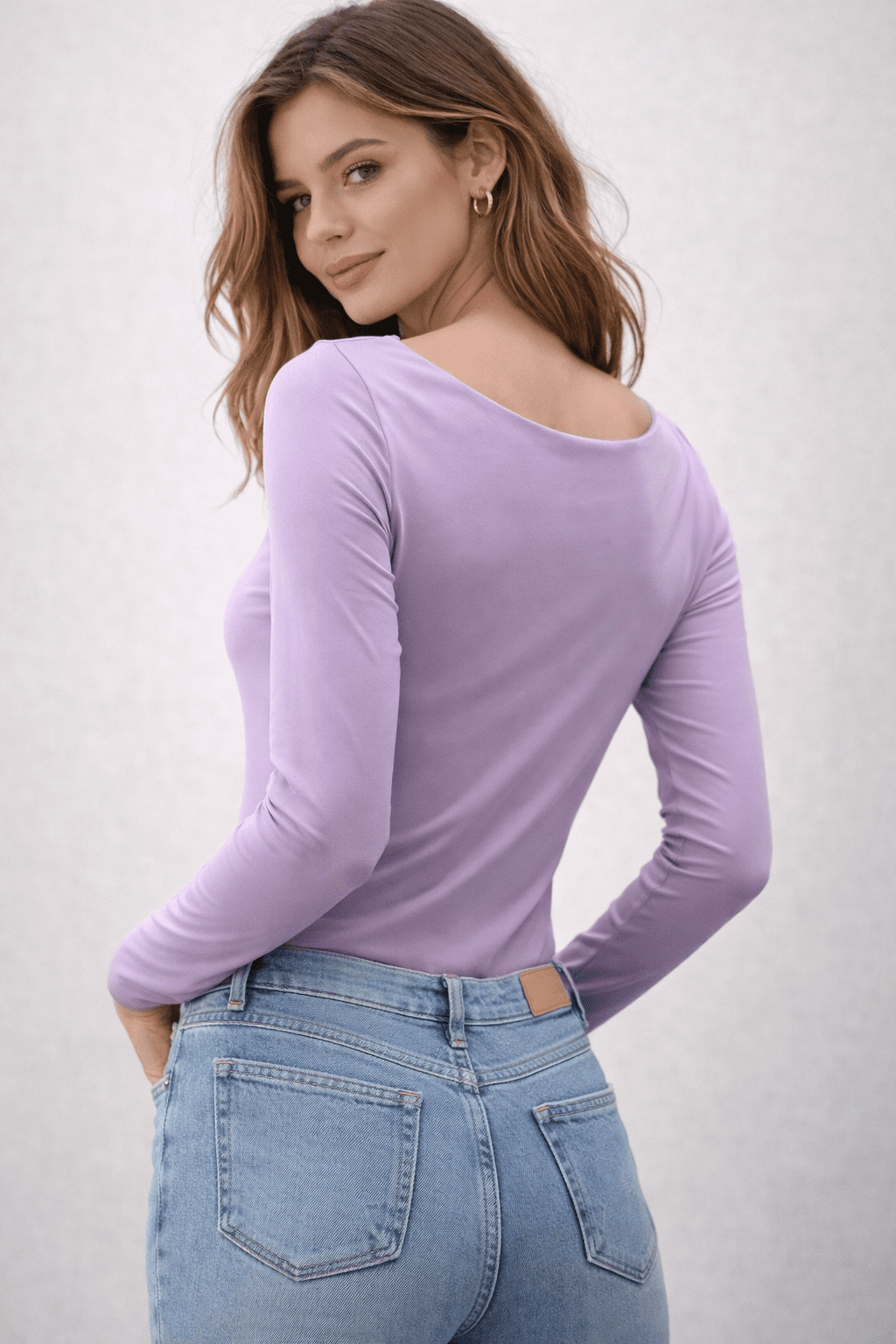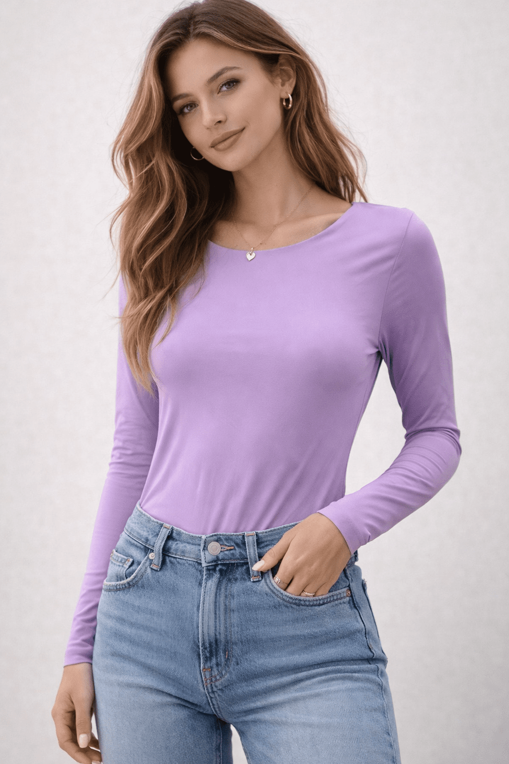 Refined and feminine, this lila long-sleeve bodysuit is designed to enhance your silhouette with its smooth, sculpting fit.