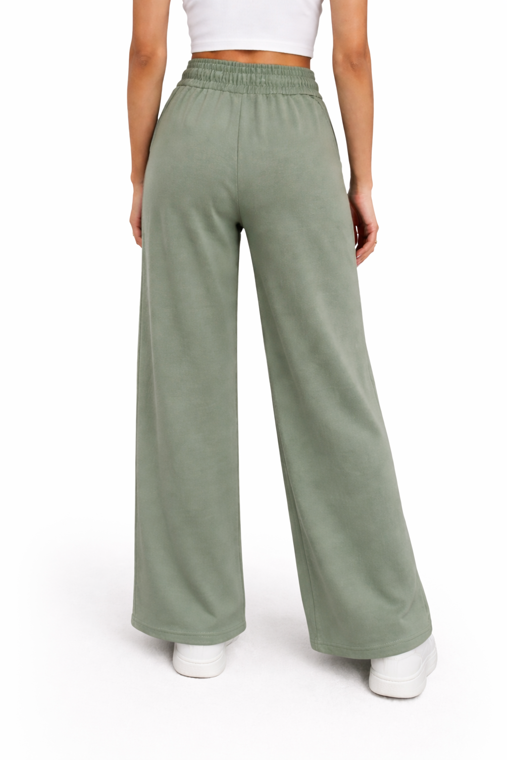 Elevate your everyday comfort with these sage wide-leg lounge pants, designed for a relaxed yet stylish look.