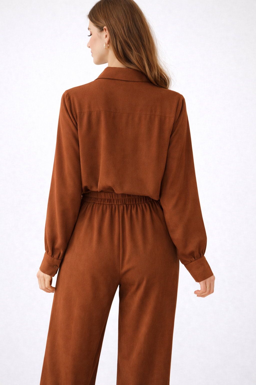 The long-sleeve blouse features a classic collar and a relaxed, fluid fit that drapes beautifully.