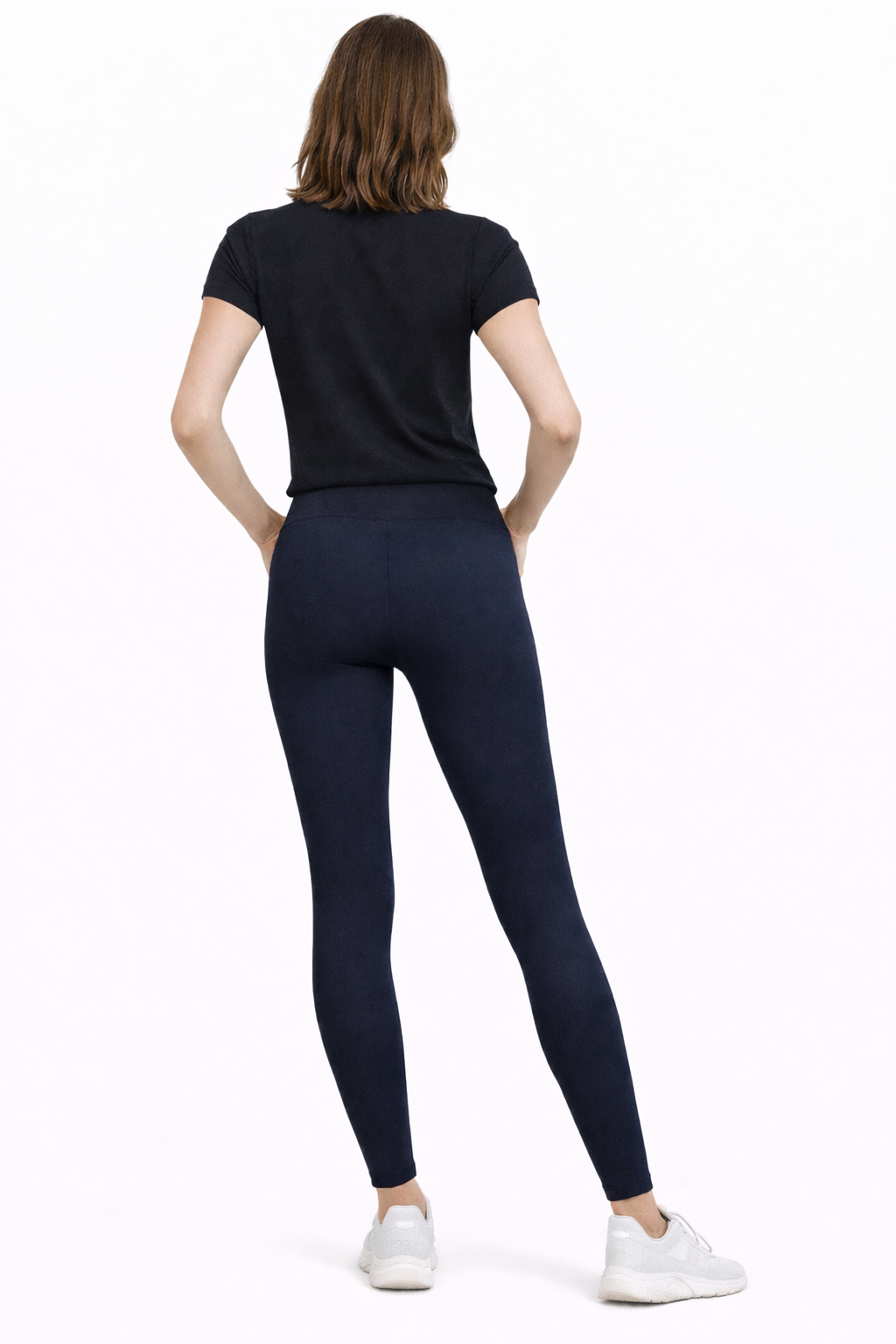 These navy blue leggings feature a sleek, minimalist design that offers both comfort and versatility