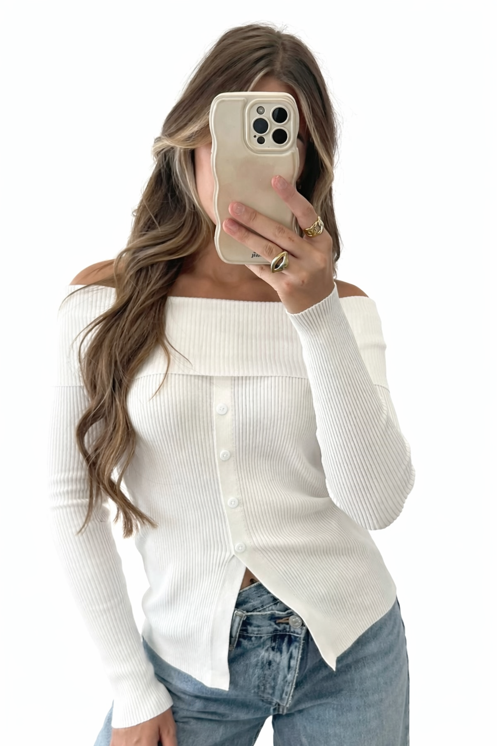 OFF SHOULDER WHITE SWEATER