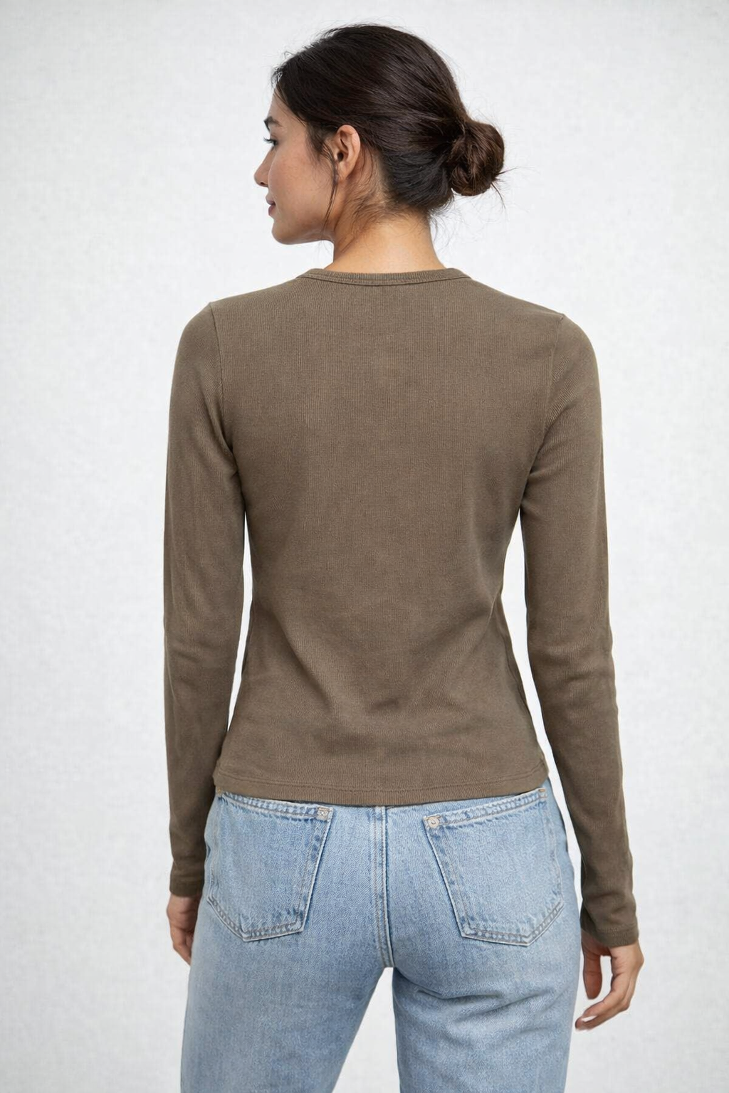 A stylish ribbed long-sleeve top designed for a flattering, feminine fit.