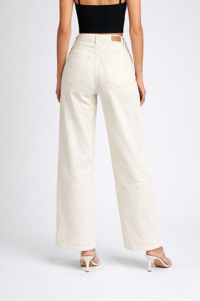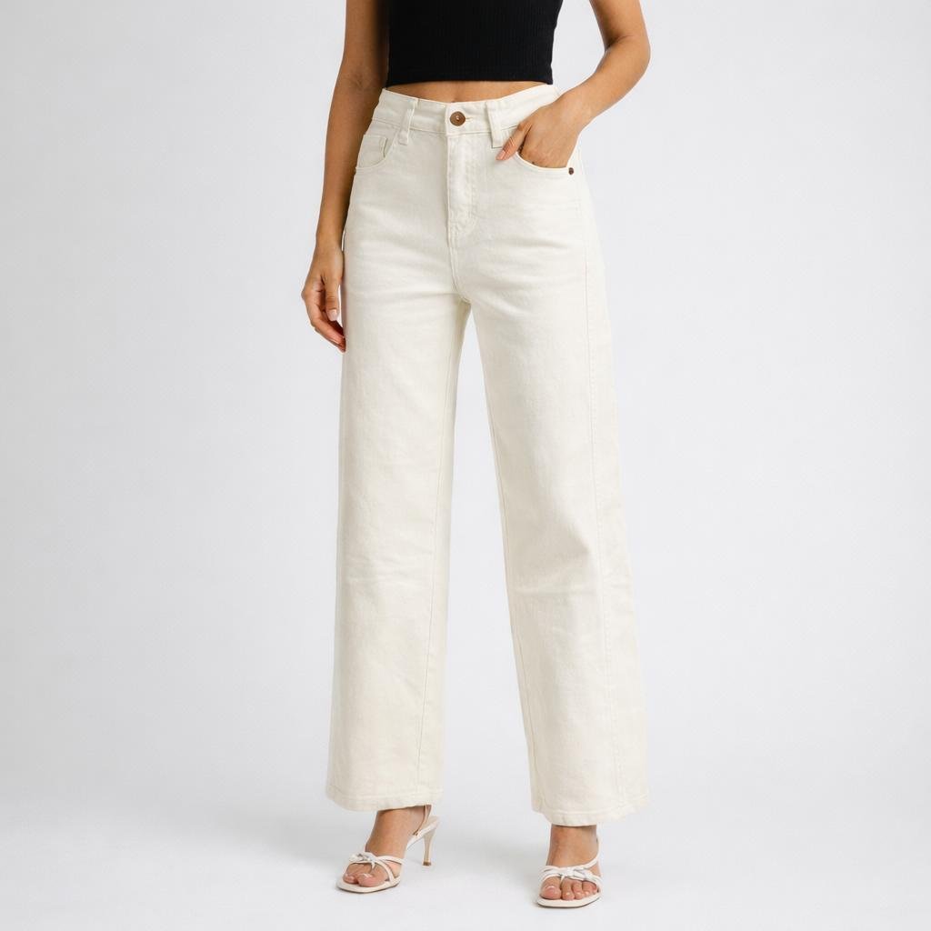 High-waist wide-leg jeans in an elegant off-white tone, designed with a clean straight cut that elongates the legs and flatters the waist.