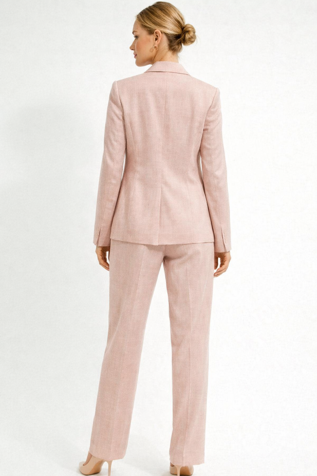 Elegant and timeless, this blush-colored tailored suit set is designed to bring a polished and sophisticated look to your wardrobe.