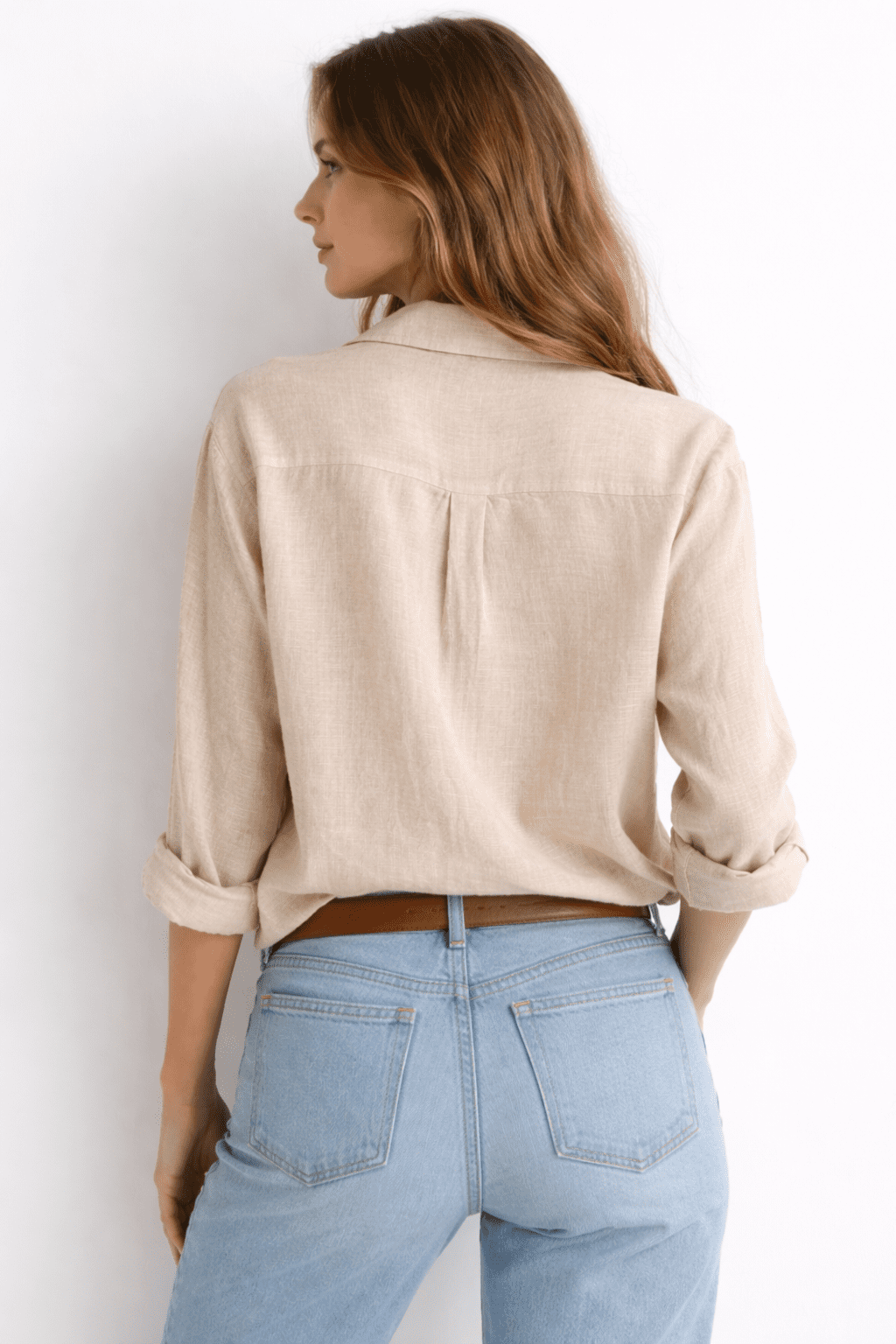 Effortlessly relaxed and timeless, this beige linen shirt is designed for everyday comfort and style.